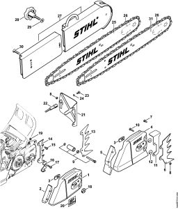 MS 461 Štitnik za ruku, kočnica lanca, mehanizam za zatezanje lanca