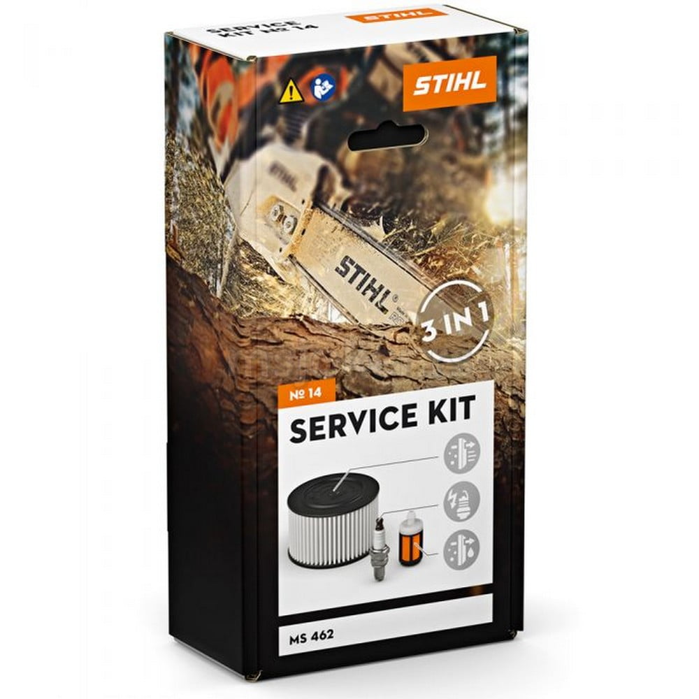 Pomoću servisnih kompleta za STIHL benzinske motorne testere možete sami da izvedete jednostavne radove na održavanju. Svaki komplet uključuje svećicu, filter za gorivo i filter za vazduh od flisa ili HD2. Uz proaktivno, redovno standardno održavanje, ne samo da možete da zaštitite komponente i delove mašine od nečistoća ili oštećenja, već i da istovremeno produžite vek trajanja vaše motorne testere. Pored kombinovanog ključa koji ste dobili uz STIHL motornu testeru, za održavanje vam nisu potrebni dodatni alati.