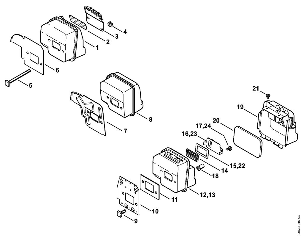 Početna / Stihl deo / MS 180 Prigušivač buke Nazad MS 180 Prigušivač buke Prikaži sve šeme 1 3 4 5 6 7 13 14 15 16 17 1 Naziv: Prigušivač buke SKU: 11301400600 Cena 2190 din. Količina - + Ukupno 2190 din. Dodaj u korpu 3 Naziv: Poklopac prigušivača buke SKU: 11301452900 4 Naziv: Šestougaona navrtka M5 SKU: 92162610700 5 Naziv: Zavrtanj M5x65 SKU: 11231481201 Cena 176.4 din. Količina - + Ukupno 176.4 din. Dodaj u korpu 6 Naziv: Rashladna ploča SKU: 11301413200 Cena 1140 din. Količina - + Ukupno 1140 din. Dodaj u korpu 7 Naziv: Rashladna ploča SKU: 11301413205 Cena 366 din. Količina - + Ukupno 366 din. Dodaj u korpu 13 Naziv: Prigušivač buke Sadrži: 14 - 17, 19 - 21 SKU: 11301400604 14 Naziv: Rešetka SKU: 11301419001 15 Naziv: Zaptivka prigušivača buke SKU: 11301490600 16 Naziv: Skretni lim SKU: 11301467400 17 Naziv: Zavrtanj za lim DIN7971-4,2x6,5 SKU: 90990210805 Povezani delovi MS 180 Štitnik za ruku, kočnica lanca MS 180 Sistem za paljenje, AV sistem MS 180 Prihvatni ram, alati