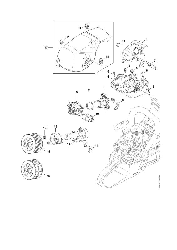 Početna / Stihl deo / MS 462 Nosač karburatora, filter za vazduh, hauba Nazad MS 462 Nosač karburatora, filter za vazduh, hauba Prikaži sve šeme 1 2 3 4 5 6 7 8 9 10 11 12 13 14 15 16 17 18 19 1 Naziv: Nosač karburatora SKU: 11421200900 Cena 1344 din. Količina - + Ukupno 1344 din. Dodaj u korpu 2 Naziv: Podloška SKU: 11281218600 Cena 156 din. Količina - + Ukupno 156 din. Dodaj u korpu 3 Naziv: Hauba usmerivača vazduha SKU: 11420800901 Cena 888 din. Količina - + Ukupno 888 din. Dodaj u korpu 4 Naziv: Hauba usmerivača vazduha SKU: 11420800904 Cena 1776 din. Količina - + Ukupno 1776 din. Dodaj u korpu 5 Naziv: Zaustavni pufer SKU: 11397915900 6 Naziv: Cilindrični vijak IS M4x16 SKU: 90223130680 7 Naziv: Klizač (šiber) SKU: 11430844100 Cena 259.2 din. Količina - + Ukupno 259.2 din. Dodaj u korpu 8 Naziv: Crevo SKU: 11421418600 Cena 342 din. Količina - + Ukupno 342 din. Dodaj u korpu 9 Naziv: Karburator 1142/00 SKU: 11421200600 Cena 16788 din. Količina - + Ukupno 16788 din. Dodaj u korpu 10 Naziv: Naglavak SKU: 11421237500 11 Naziv: Dno filtera SKU: 11421410900 Cena 750 din. Količina - + Ukupno 750 din. Dodaj u korpu 12 Naziv: Zaštitni lonac SKU: 11421216900 Cena 696 din. Količina - + Ukupno 696 din. Dodaj u korpu 13 Naziv: Šestougaona navrtka M5 SKU: 92162610700 14 Naziv: Pufer SKU: 11401229901 Cena 196.8 din. Količina - + Ukupno 196.8 din. Dodaj u korpu 15 Naziv: Filter za vazduh HD2 SKU: 11421404402 Cena 1074 din. Količina - + Ukupno 1074 din. Dodaj u korpu 16 Naziv: Filter za vazduh SKU: 11421404401 Cena 1062 din. Količina - + Ukupno 1062 din. Dodaj u korpu 17 Naziv: Hauba Sadrži: 18 SKU: 11420801600 Cena 4272 din. Količina - + Ukupno 4272 din. Dodaj u korpu 18 Naziv: Zatvarač SKU: 11401409200 19 Naziv: Kapa SKU: 11210847100 Povezani delovi MS 462 Sistem za paljenje MS 462 Regulacija gasa MS 462 Pumpa za ulje, spojnica